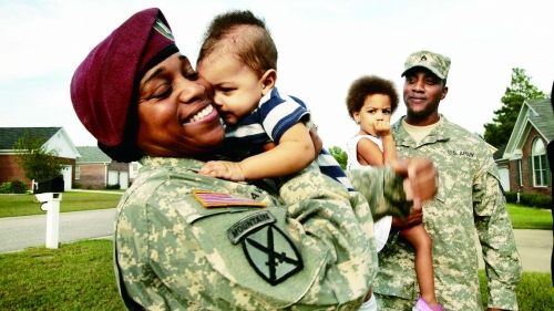 将军刚宣布“请欢迎你的战士回家”,等待已久的阿曼达就抱着儿子扎进丈夫的臂弯。“我爱你。”艾伦捧着阿曼达的脸吻了下去,年轻的妻子在《陆军勇往直前》的激昂音乐声中忍不住哽咽起来。