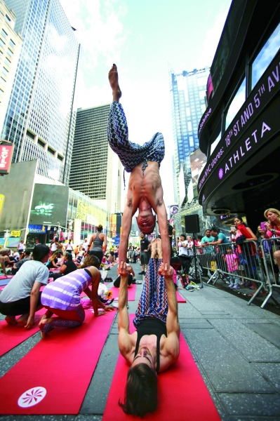 6月21日,瑜伽爱好者在美国纽约时报广场练习瑜伽。 |