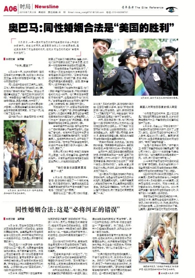 6月26日,在此起彼伏的欢呼声中,吉姆·奥伯格菲尔接到了一个特别的电话。“我只是想祝贺你。”美国总统奥巴马在美国有线新闻网的节目中拨通了他的电话,“你改变了这个国家。”