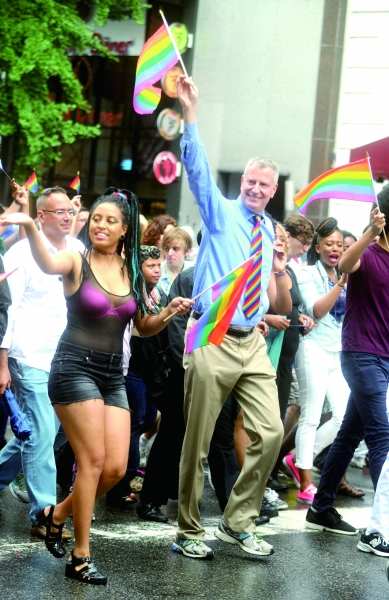 6月28日,纽约市长比尔·德布拉西奥参加纽约同性恋大游行。 |