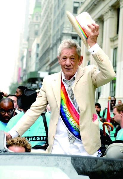 英国老牌演员、“灰袍巫师甘道夫”扮演者伊恩·麦克莱恩在纽约参加同性恋大游行。 |