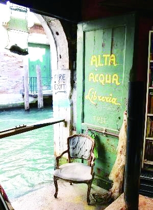 2. Libreria Acqua Alta(“高潮”图书馆),意大利威尼斯 “高潮”图书馆诞生于亚平宁半岛上的水城,后门正对着运河。水位上涨得厉害的时候,店员需要把成百上千的书搬到更高的地方。随着时间的流逝,浴缸和“贡多拉”小船都客串起了店内的书架。有驴友评价说:“靠墙摆满了书,新书和旧书随意摞在一起。书店后院有一个特殊的台阶,由古老的百科全书堆砌而成。有闲情的话,不妨上去领略运河风光。” |