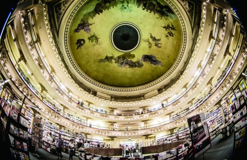 3. El Ateneo(雅典人书店),阿根廷布宜诺斯艾利斯 雅典人书店的前身是一家有年头的剧院,1919年由知名建筑师设计,2000年被改造为书店。店内陈设十分完好地保留了剧院风格,参观者现在仍能看到恢宏的穹顶壁画、装潢典雅的包厢、精美的雕刻品甚至舞台幕布。读者点评称:“走入大堂,内心会情不自禁地沉静下来,就像在等待一场演出启幕。你可以在这里点上一杯咖啡,读读布宜诺斯艾利斯城市指南,感受这座书店独一无二的氛围。”包厢被改造成小阅览室,大舞台变成了提供精美点心、上等饮品的咖啡厅,咖啡厅的“菜单”照乐谱编制……点点滴滴都体现出设计师的匠心。 |