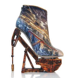 罗德维奇家世代制鞋,安娜斯塔西娅的父辈与祖父辈皆以此为生。但她不以沿袭家族传统为乐,反而钟情于研发各种新技术。在伦敦艺术大学求学期间,她就开始了自己的创新之旅,积极尝试跨媒介制作,并推出了以木艺、雕刻、锻造为手段的新型鞋履。此后,她还尝试了电镀、锈蚀、丝印和3D打印等工艺,作品引发热烈反响。