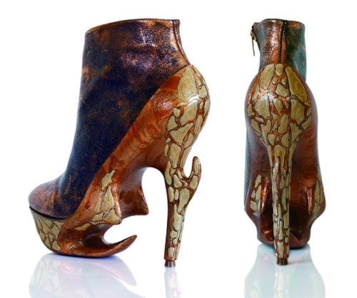 从亚历山大·麦昆的悲伤故事里醒来吧,看看白俄罗斯鞋履设计师安娜斯塔西娅·罗德维奇的“炼金术”。以化石、藤壶乃至喷灯为灵感,罗德维奇迅速展开了其同名品牌下最新的“狂野女鞋”系列的创作。罗德维奇认为自己的新系列绝非凡物,而是“穿在脚上的文物”。