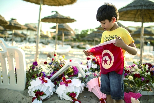 6月27日,突尼斯苏塞民众在事发地点献花,悼念遇难者。图片来源CFP |