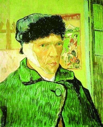 饱受精神病折磨的梵高身陷修道院,旁人无力拯救他的绝望。在这幅画中,梵高切掉了自己的左耳,他湛蓝的眼睛尖锐而有穿透力,置身事外地看着画中人脸上的伤。你既不能说他正常,也不能称他为疯狂,他只是一位勇敢而诚实地敞开心扉的普通人。