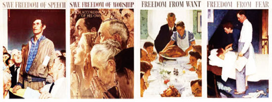 诺曼·罗克韦尔绘制的“四大自由”主题宣传海报 |