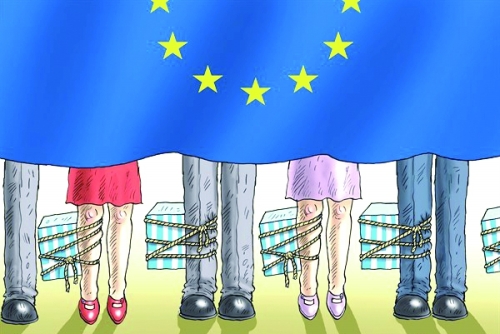 德国政府应该明白这当中的问题,他们为何无所作为?因为以往,每个国家都可以依靠汇率手段调整自己的货币政策。然而,当欧洲采取单一货币体制后,这条路被堵死了,其他国家的债务人只能通过财政紧缩削减需求。于是我们看到,以牺牲经济增长为代价,它们试图强行降低对德国的贸易逆差,近几年,所谓“欧猪五国”(葡萄牙、爱尔兰、意大利、希腊和西班牙)与德国的贸易总额都在缩水,希腊和爱尔兰的下降幅度更是超过了1/3。