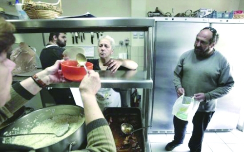 41岁的亚科沃斯在慈善机构领饭。在经济危机中他丢了邮政部门的铁饭碗,转而当学校保安,但最后还是难逃失业。“如果3年前有人说我将靠捡易拉罐维生,我会觉得他是疯子。”这个曾有3套房产的男人说。 |
