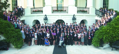 2009年,美国副总统拜登为17岁的张舸颁发“美国总统奖”。 |