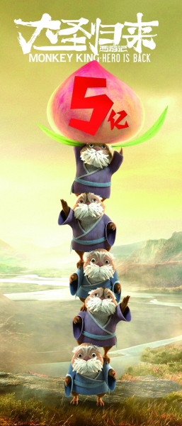 票房突破5亿后,《大圣归来》官方微博发布了贺图。 |