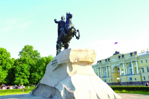 在圣彼得堡的“十二月革命广场”上,高高树立着一座雕像,一位勇士骑着战马挥舞长鞭,马蹄下踩踏着象征敌人的毒蛇,勇士目视前方,充满着坚定与力量。这位勇士,便是这座城市的缔造者——彼得一世。