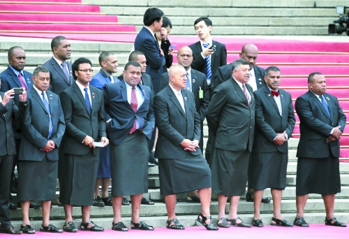 今年是中国和斐济建交40周年。应中国国务院总理李克强的邀请,斐济共和国总理乔萨亚·沃伦盖·姆拜尼马拉马于7月14日至24日对中国进行正式访问。期间,代表团将前往北京、上海、福建等城市参观访问。