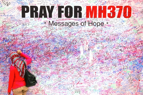 一名女士在马拉西亚首都吉隆坡市中心的留言板上签名,为失踪的马航MH370祈福。 |