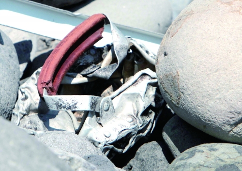 调查人员发现的金属碎片,上有中文“宜兴”两字。 |