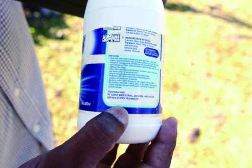 一瓶标注着“印尼雅加达”的洗手液被冲上沙滩。 |