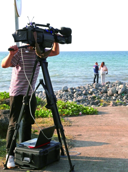 8月2日,法属留尼汪岛的海滩,一名外国记者在当地拍摄。 |