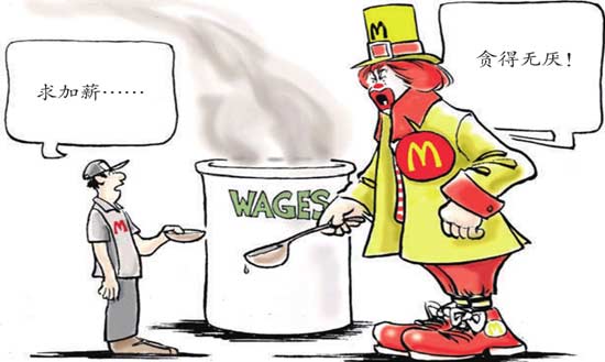 这倒不难理解,一个行业的工资上涨,必会影响到整个劳工市场上劳动力的供需平衡,最终带动其他行业工资水涨船高。否则怎会有这么多不仅没成土豪、连每月多出的几百块也拿不到的非快餐业工人赶来参加集会,为别人加薪而高兴成这样呢?