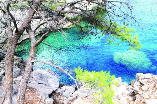 岛上的风景会让人产生置身其他星球的错觉,荒凉的岩石,陡峭的悬崖,一汪清澈幽深的湖水,而当蓝色的大海出现在视野里的时候,整个画面立即活泼起来。只有地中海才可以这么静,这么美!沙滩可以如此细腻,海浪可以如此温柔。当你一步步走进深处,即使海水漫过肩膀,一低头,仍可看见脚趾。脚步挪动之间,脚趾间会翻腾起一缕缕细细的沙,仿佛灵活的鱼在小腿边缠绕几圈,然后渐渐隐去。