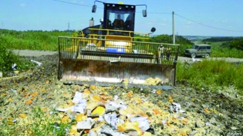 与此同时,欧盟的日子也不好过。俄罗斯是欧盟农产品的主要进口国,2013年从欧盟进口农产品总额达到130亿美元(约合人民币833亿元)。欧盟为了安抚农民,已经销毁或抛弃了价值1.7亿美元(约合人民币10.9亿元)的农作物和食品,以防止农作物价格下降。