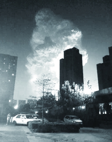 8月12日,天津滨海新区发生剧烈爆炸,现场升起蘑菇云,数十公里外有震感。 |