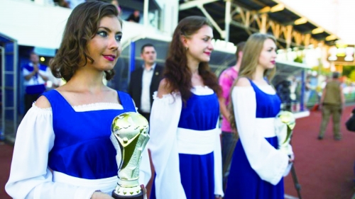 之前,这两支球队各有一场“国际比赛”的经历,而且都是在高加索地区的阿布哈兹共和国输了球。相比之下,8月8日举办的这场比赛,被赋予了更多标志性意义。美媒记者在现场看到,与“顿涅茨克人民共和国”绝大部分庆典一样,赛场内外充满了节日气氛,整个体育馆里彩旗飘飘,开幕典礼也做到了极致:完整地演奏了对阵双方的“国歌”,武装警卫队列齐整,“顿涅茨克人民共和国”副主席丹尼斯·普什林也到场助威,可见官方对这场比赛的重视。有趣的是,组织者还模仿“大力神杯”制作了两尊复制品奖杯,双方各得一尊。