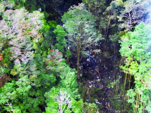 有村民报告称看到了客机撞山坠毁。17日,搜救飞机在巴布亚省山区发现了坠毁客机的残骸。美联社称,当搜寻人员发现失事飞机时,残骸还冒着滚滚浓烟。飞机残骸所在地海拔2600米,印尼政府派出的两支搜救队17日因浓雾无法上山,次日才到达。印尼国家搜救总署署长、救援行动负责人苏里斯迪认为,恶劣的天气和险要的地形是飞机坠毁的主要原因。