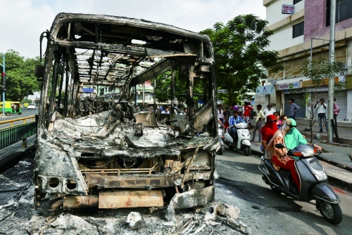 8月26日,艾哈迈达巴德街头被焚毁的车辆。 |