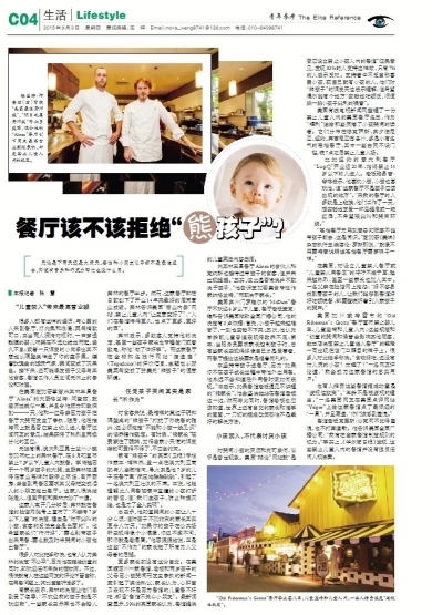 “高档餐厅无需刻意告知顾客不能带孩子前去,这是常识。”芝加哥《美味》杂志执行主编海伦·罗斯那说,“就像不需要特意说明进高档餐厅要穿裤子一样。”
