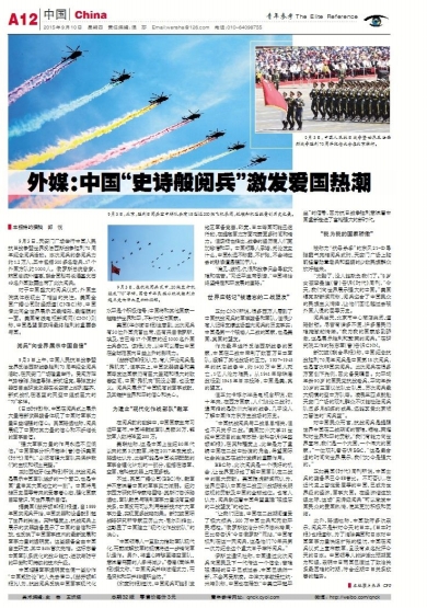 外媒:中国“史诗般阅兵”激发爱国热潮