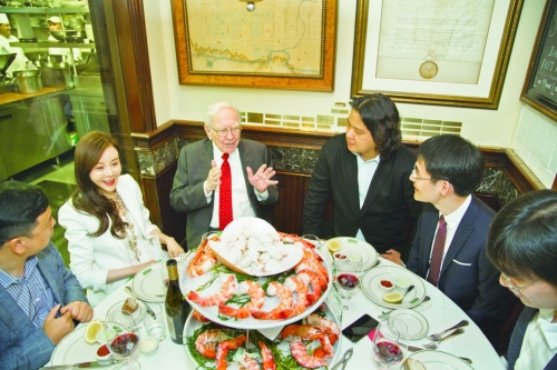 9月8日中午12时,2015年赢得巴菲特慈善午餐的天神娱乐董事长朱晔及其团队成员,在位于纽约曼哈顿49街的Smith & Wollensky餐厅与沃伦·巴菲特进行了愉快的会餐。