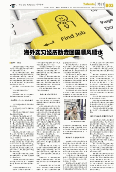 海外实习经历助我回国顺风顺水