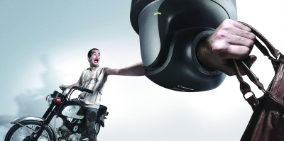 佳能某款摄像头在泰国做的广告海报,意在警告飞车劫犯,你们的一举一动都在摄像头的监控之下。 |