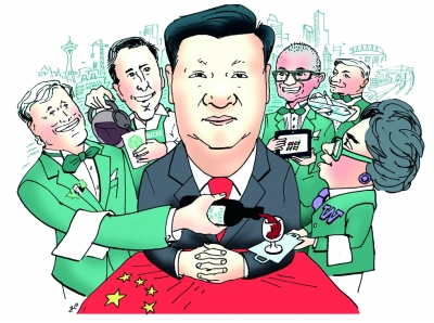 9月23日,习近平主席在西雅图参加中美企业家圆桌会议,一家美国媒体用漫画展现美国企业家对习近平主席的欢迎。 |