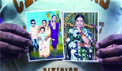 在迪拜的外籍打工者拿着故乡亲人的照片。 |