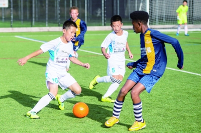 一场中英同龄小球员的友谊赛正在进行 |