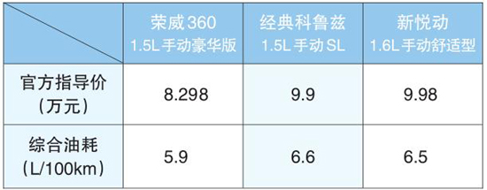 除了油耗,如果再加上inkaNet/inkaLink、胎压监测等配备,荣威360 1.5L手动豪华版多出来的使用价值可以用万元计,而它的售价却比经典科鲁兹1.5L手动SL低了近万元,比新悦动1.6L手动舒适型更是低了近2万元,性价比优势相当明显。
