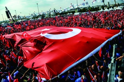 当地时间9月20日,土耳其伊斯坦布尔举行大型反恐集会,总统埃尔多安与总理达武特奥卢共同出席,超过10万民众参与。
