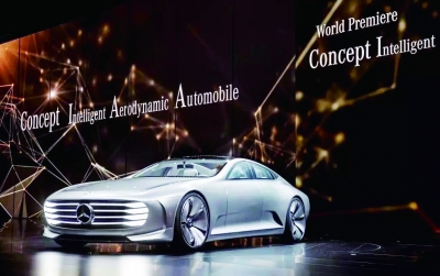 9月14日晚,在法兰克福车展前夜的“奔驰之夜”上,奔驰不仅展出了GLC、GLE、C Class和smart等全新量产车型,还带来了一款全球首发概念车IAA(Intelligent Aerodynamic Automobile智能空气动力学汽车),该车采用汽油发动机与电动机的组合,综合最大功率为205kW,最高时速可达250km/h,二氧化碳排放量为28g/km,纯电动模式下最大续航里程为32km。另外,当车速达到80km/h,其车身高度可自动降低,以获得更低的风阻系数。