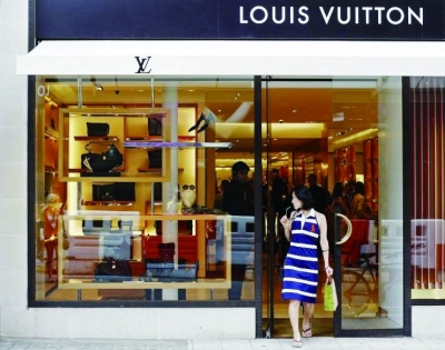 一位中国游客走出伦敦新邦德街的路易威登商店。 |