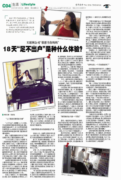 “18天不出家门,不是为了比谁更‘宅’,而是探究新兴的互联网上门服务在多大程度上影响了生活。”小唐告诉《青年参考》。为了让实验尽量客观,她为自己设了很多规矩,第一条便是“在实验期间除非遇到不可抗力,否则完全不出门,工作、生活、健身都在家完成”。第二条是“所有服务都通过手机App预约,而不是打电话联系;每天至少测试4种上门服务”。最后一条是,登门拜访的朋友不能帮小唐带任何东西。