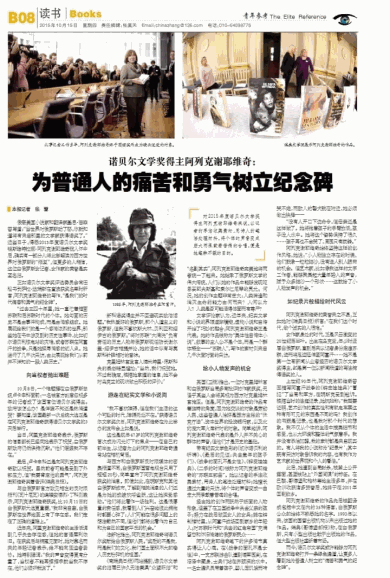 正如诺贝尔文学奖评选委员会常任秘书长萨拉·达瑞斯在宣读获奖名单时所言,阿列克谢耶维奇的写作,“是我们的时代痛苦和勇气的纪念碑”。