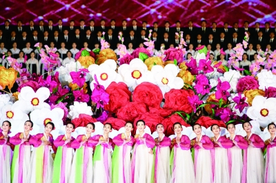 10月11日,朝鲜平壤,朝鲜举办歌舞晚会,庆祝劳动党成立70周年。