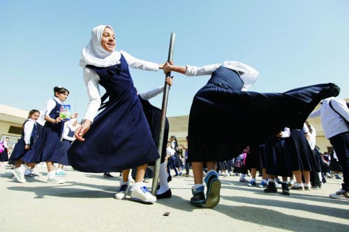 在IS的攻势下,伊拉克的学校一度成为难民的避难所。今年伊拉克的开学日期比往年延后1个月,学生在紧张的安全形势下走进学校。