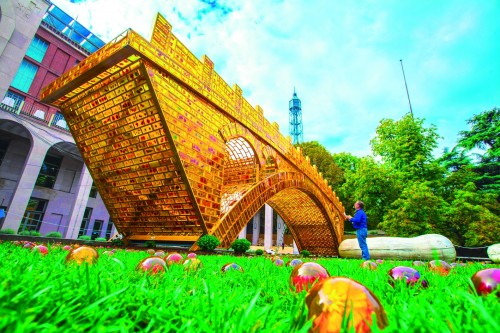 “丝路金桥”中除了砖,还有花。舒勇用金色水晶镶嵌了“一带一路”范围内53个国家94个城市的国花或市花。他认为将这些花融入“丝路金桥”的砖中,最能体现共荣共生的丝路精神。