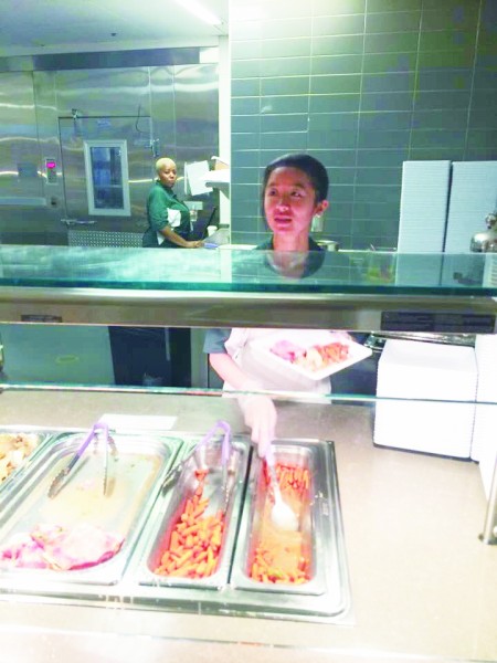 本学期,我申请到了在学校食堂打工的机会,每小时工资是9美元,比学校所在的弗吉尼亚州的最低工资(每小时7.25美元)要高一些。我的活儿挺多,从切蔬菜、切鸡肉,到为同学们盛饭、包三明治,再到整理餐具,都是我的份内事。