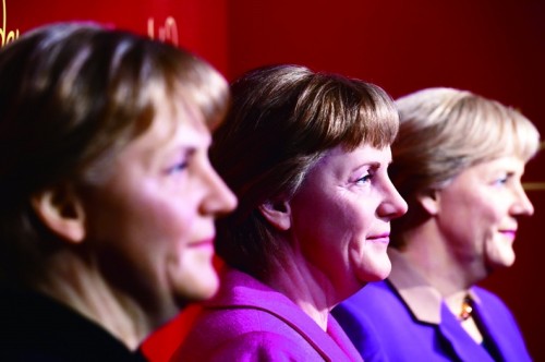 11月16日,德国柏林,杜莎夫人蜡像馆展出德国总理默克尔2005年、2009年和2014年3个时期的蜡像,纪念默克尔当政10周年。