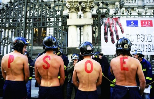 西班牙 11月19日,西班牙奥维耶多,消防员在阿斯图里亚斯地区议会前示威,要求提高工资,提升公共安全标准。 据英国路透社报道,示威者在当天穿着工作服,但一些人来到议会前,脱下上衣,裸露背部,在背上书写“PSOE(西班牙工人社会党)让你危险” 的字样。 |