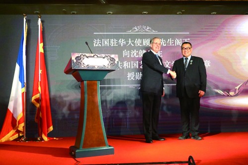 “今天是个很重要的日子,因为法兰西共和国决定表彰一位在中外电影之间建立桥梁的中国人。我知道,我们法国的让-雅克·阿诺导演和演员苏菲·玛索非常欣赏他。”法国驻华大使顾山(Maurice Gourdault-Montagne)在给沈健的授勋仪式上如是说。